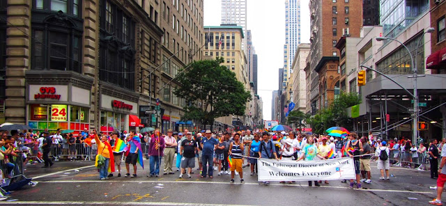While Bishop Curry is very at home behind a pulpit or microphone, Paul's ministry was more behind-the-scenes, but no less effective. Besides his work at St. Luke's, Paul was the driving force of the LGBT Concerns committee for the Diocese of New York. His principal responsibility there was coordinating the Episcopal presence at the NYC Pride March, which takes place every June. Under Paul's tutelage, people from more than a dozen parishes on both sides of the Hudson River--an entire city block full of people--makes its way down Fifth Avenue leading a giant float proclaiming The Episcopal Church Welcomes You.